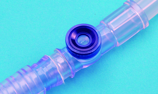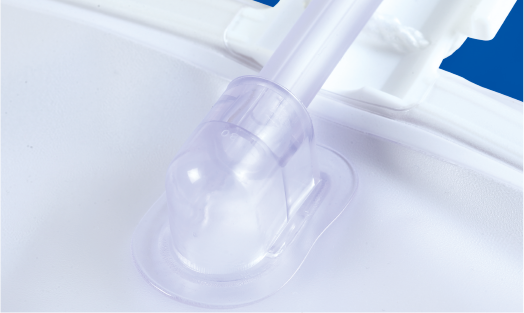 針刺切創防止を対策したニードルレス採尿ポートです。採尿時には、針の付いてない一般的なスリップタイプのディスポーザブルシリンジをご使用ください。