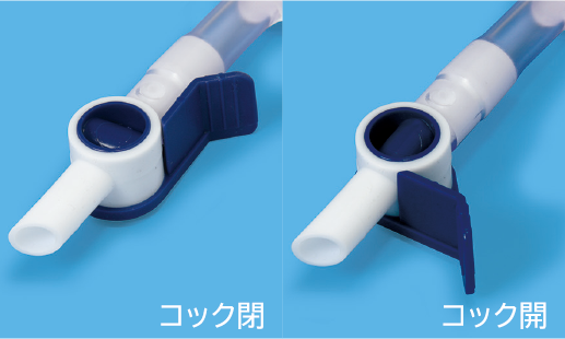 排尿時に片手で作業できるように、コックハンドルタイプにしました。